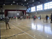 本日、体育館で特別支援部会が「フロアボール」というスポーツの研修を行いました。