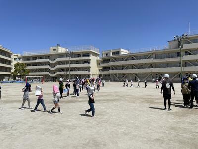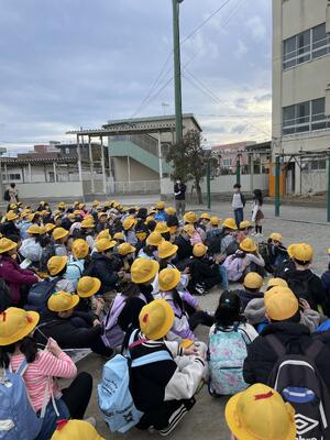 おしゃべりをすることなく、避難場所に集まりました。教室に戻る際も静かに廊下等を歩き、訓練に真剣に取り組んでいる姿が見られました。さすが行徳っ子です。