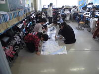 6年生 図工 提出した作品を、お手本などと比較し、出来映えをチェック中です。