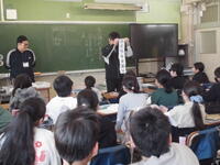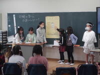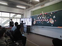 1年間、行徳の歴史と伝統を学んできた3年生は、学習してきたことのまとめとして、2年生向けに発表会を開催しました。お祭りの衣装やお囃子・バカ面踊り、お神輿、もみ方などについて、映像や演技、ポスター等様々なまとめ方・伝え方で発表しました。発表者の3年生も聞き手の2年生もみんな一生懸命でした。