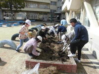 委員会活動で、作物の栽培をするための畑の整備を地域の方、教頭先生がしてくださいました。