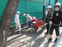 側溝の泥砂を取り除いたり、窓ガラス、トイレ清掃、花壇整備など、全員が一生懸命に取り組んでいました。