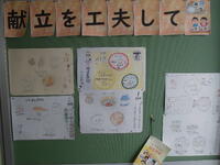 家庭科の時間に作成した、献立のプレゼン資料です。手書きだけでまとめました。班ごとのおすすめポイントがよくわかります。