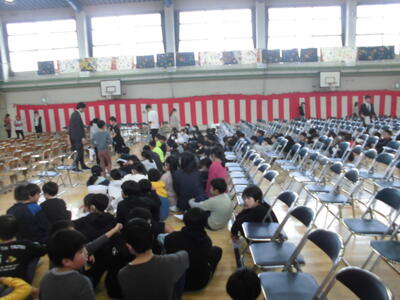 1~5年生の手作りプレゼント、6年生紹介クイズの後