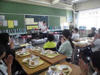2年生 先生のお手本を見ながら、動きを覚えています。