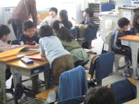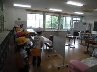 1年生 ひらがなの学習中です。文字を書く時のポイントをしっかりと聞いています。文字もそうですが、聞く姿勢も美しいです。