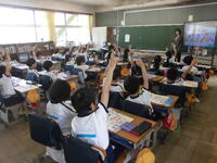 6年生 担任が違うクラスで授業をしているところです。普段とは違った意識で学習に臨んでいます。