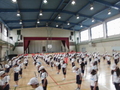 まこも学級低学年 体育 準備運動のやり方、整列の仕方など、みんなで年度初めの確認をしています。1年間学習がスムーズに進みそうです。