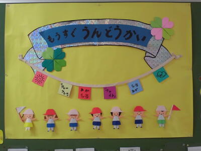 にじの部屋前の掲示も運動会に向けての掲示です。