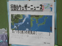 校長室前には、5年生が理科で学習している天気に関して、各クラスごとの天気予報が掲示されています。