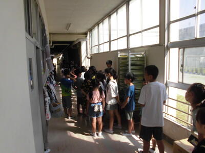 子供たちは、おしゃべりをせずに、静かに廊下で待機しています。