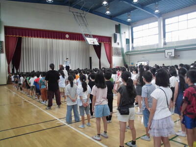 夏休みを迎える会では、校歌を大きく美しい声で歌いました。