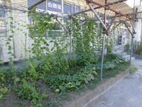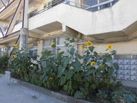 例年にない暑さにも負けず、学校の花壇のひまわりやゴーヤ、カボチャは、大きく育っています。