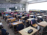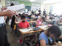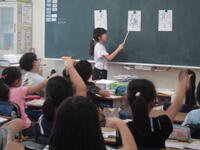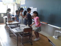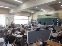 熱中症警戒アラートが発表され、蒸し暑い中ですが、子供たちは集中して学習に取り組んでいます。
