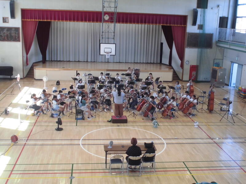 練習を兼ねて、体育館でコンクールに向けた演奏を、お家の方や教職員に披露しました。