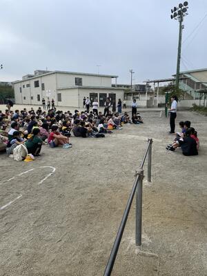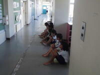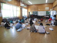 子供たちは、地震発生時のシェイクアウト訓練も行いました。おしゃべりせずに真剣に取り組んでいました。