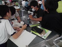 6年生 「見えた、見えた」と夢中で水中の生き物を観察しています。