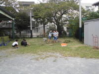 子供たちは、朝、アサガオの水やり、様子の観察をしています。楽しそうな表情いっぱいの、朝のひと時です。