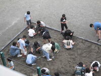 ただし、スイカは、準備できませんので、ボールをスイカに見立てて、スイカ(ボール)をたたきます。