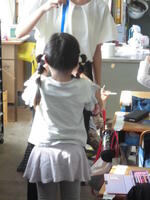 「スイカ(ボール)わり」が終わったら、上学年が、ペアの子を教室まで送ります。