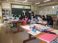 3年生 総合的な学習の時間に、ゲストティーチャーをお招きして、60年前の行徳小の写真や二宮金次郎の像、行徳のお祭りについて、お話をしていただきました。