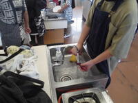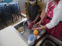 先日、学校の花壇から収穫したサツマイモを、サツマイモチップスにしました。手順や包丁、ガス台の使い方に気を付けて、おいしいチップスづくりをしました。