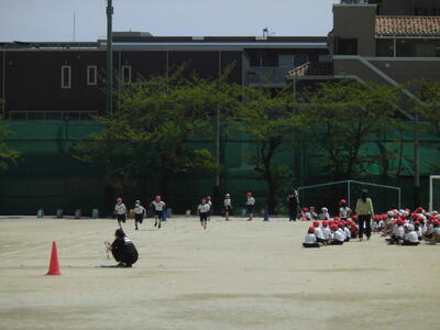 6年生同士記録をとったり、6年生が、1年生の記録をとったり、コツを教えたりしていました。