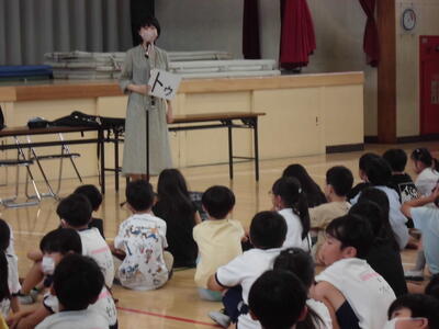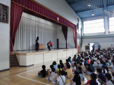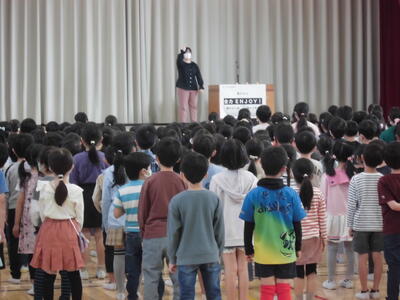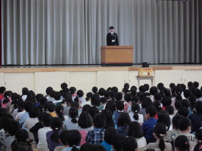 全校朝会で、代表委員会から「行徳小の正義の味方」キャンペーンの紹介がありました。