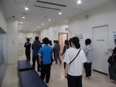 5月30日 水泳学習前に、学校から施設への経路確認及び児童・職員の建物内での動線確認をしました。