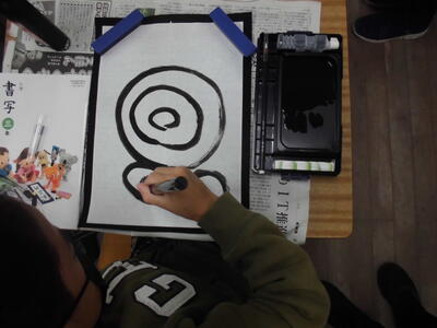 3年生から、書写の学習で、毛筆を使います。今日は、準備や後片付けについて、道具の名前や各部の名称について学び、半紙に円を書くなどして、筆の感覚を楽しみました。