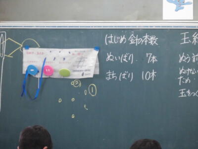 5年生からは、家庭科の学習が始まり、今日は、玉結びなど針で縫う時の基礎を学びました。