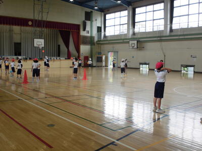 3年生 ウォーミングアップとして、ボールを使った自由な活動をしているところです。