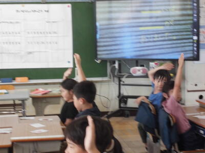 同じく5年生が、理科で「生命のつながり」について学習しています。自分の考えを発表できることも、友達の発表をしっかり聞いている様子も素晴らしいです。