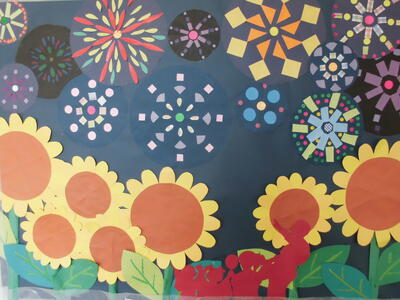 掲示委員会のみんなが作製した、季節が感じられる掲示物が、校内の様々な場所に、貼られています。