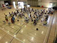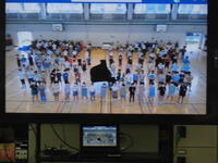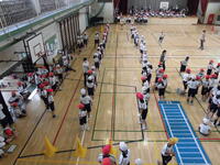 運動会の応援団が体育館で