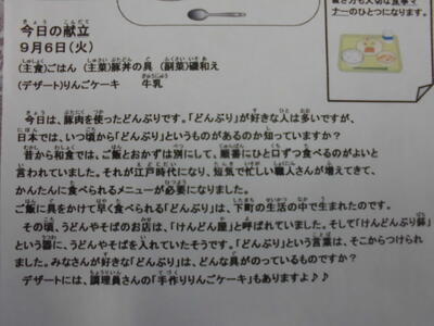 ランチタイムだより!「どんぶり」は、江戸時代…?!&「りんごケーキ」は、新レシピで手作り!!
