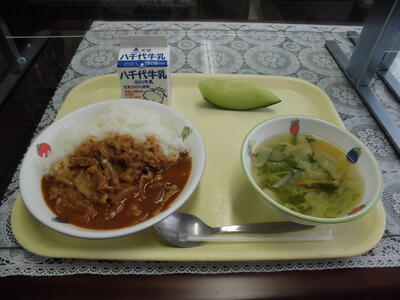 チキンカレーライス、ひじきのマリネ、牛乳です。