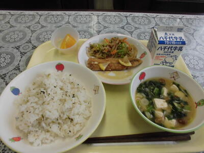 献立:牛乳、春の香りご飯、鰆の南蛮