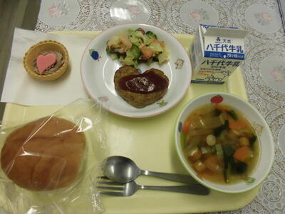ランチタイムだより!今日はバレンタインデー!外国では、お花やカードを送ったり…?!ハートとチョコいっぱいの献立…!!