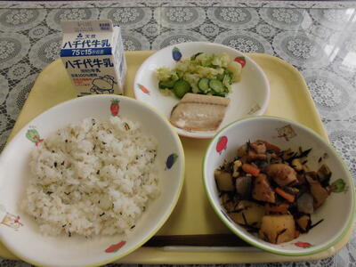 11/12(金)の給食! 投稿日時 : 2021/11/12 行徳小学校管理者 献立:牛乳、菜飯、 サバの文化干し、 大豆の磯煮、即席漬け! ※近年、サバは北欧産が 多いのですが、給食では 千葉県産が出ました!!