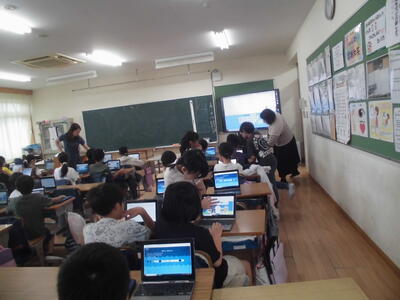 3年生 ICT支援員さんの力もお借りして、タブレット活用中です。子供たちは、すぐに操作を覚えたり、やり方を教えあったりと一生懸命です。