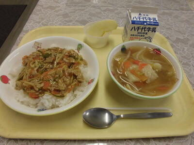 献立:牛乳、チンジャオロース丼、