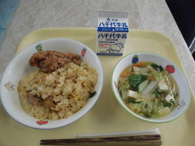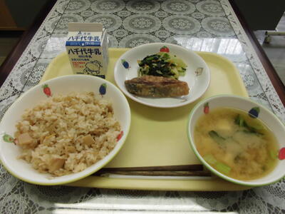 献立:牛乳、春の香りご飯、鰆の南蛮