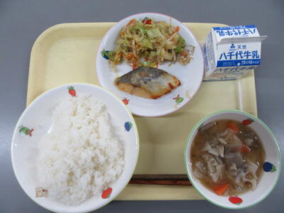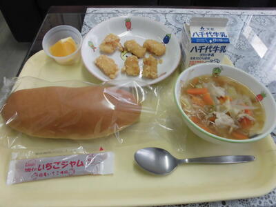 献立:牛乳、ご飯、鮭の竜田揚げ、