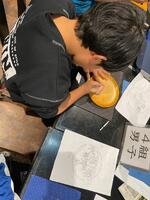 講師の先生に教えていただいたとおりに、頑張って彫っています。