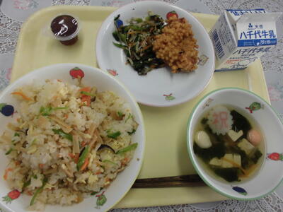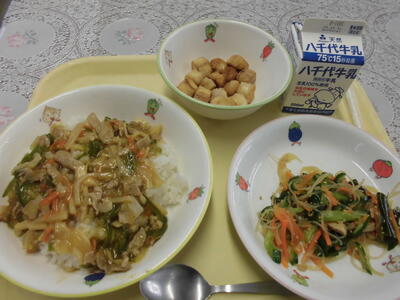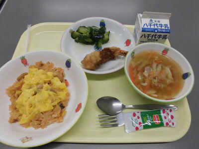 ランチタイムだより!今日は「中華おこわ」!中国では、…?!「春巻き」は、いろいろな具材を包んで、…楽しい…!!