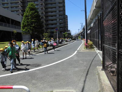 妙典公園への行き返りの安全確認のほか、公園の外周で、活動中にずっと子供たちを見守ってくださいました。