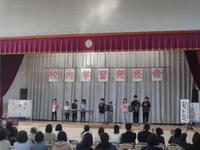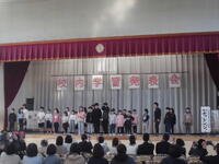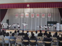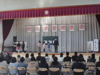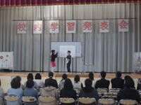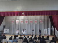 まこも学級 体育館で、学習発表会を行いました。保護者のみなさん、保育クラブのみなさんが発表を見てくださいました。日頃の学習の成果を、一日の授業風景にして発表しました。1時間目 国語 2時間目 算数 3時間目 体育 4時間目 音楽 最後にまこも学級全員で、今回の発表のテーマとした「チャレンジ」を合唱しました。発表の内容や様子も素晴らしく、会場等の後片付けもやり遂げた姿にも成長を感じました。