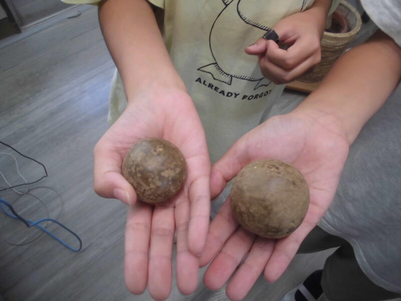 5年生の子ども2人が、1学期から作っていた泥だんご。