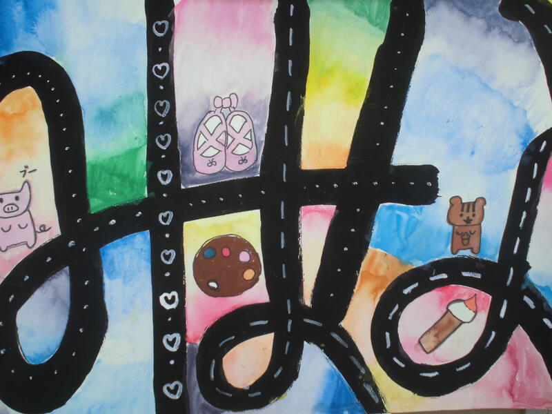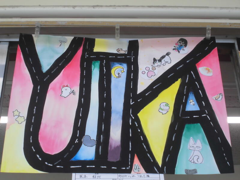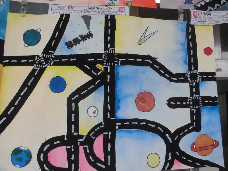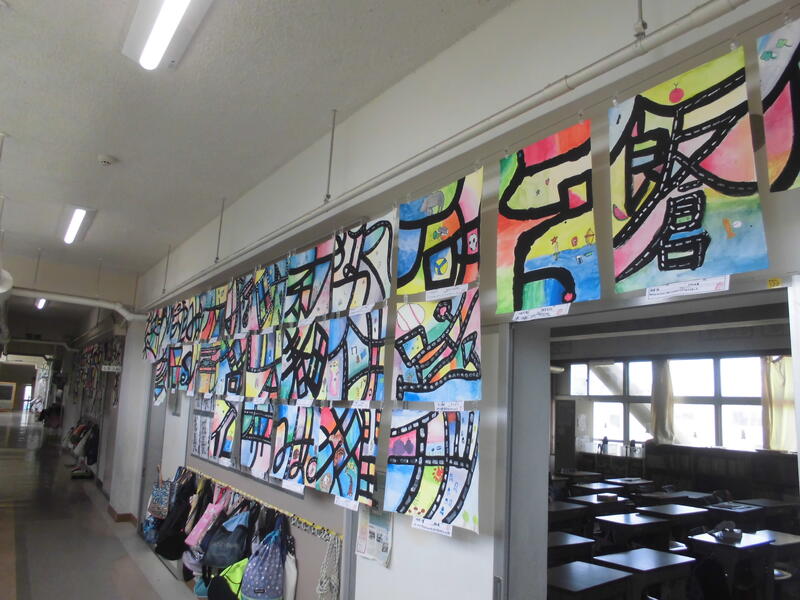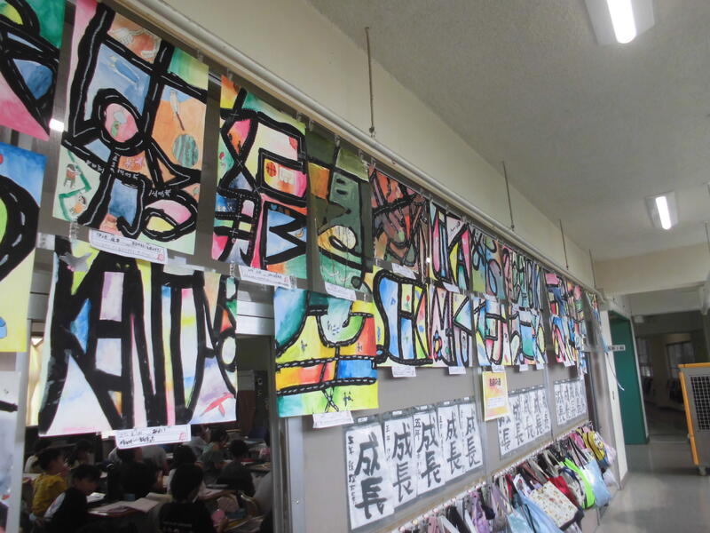 5年生の廊下に、素敵な図工の作品が掲示されました。
